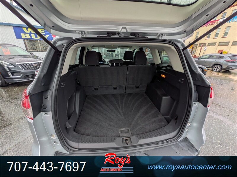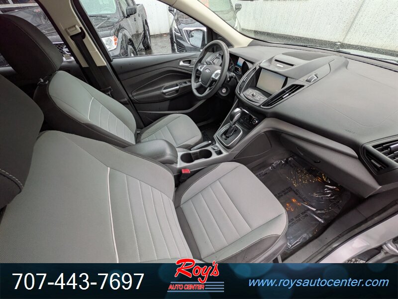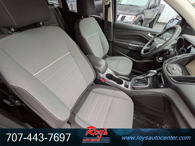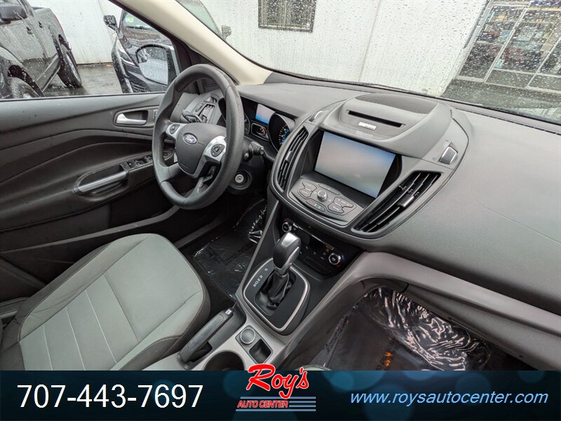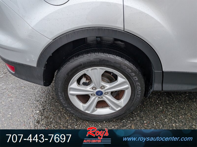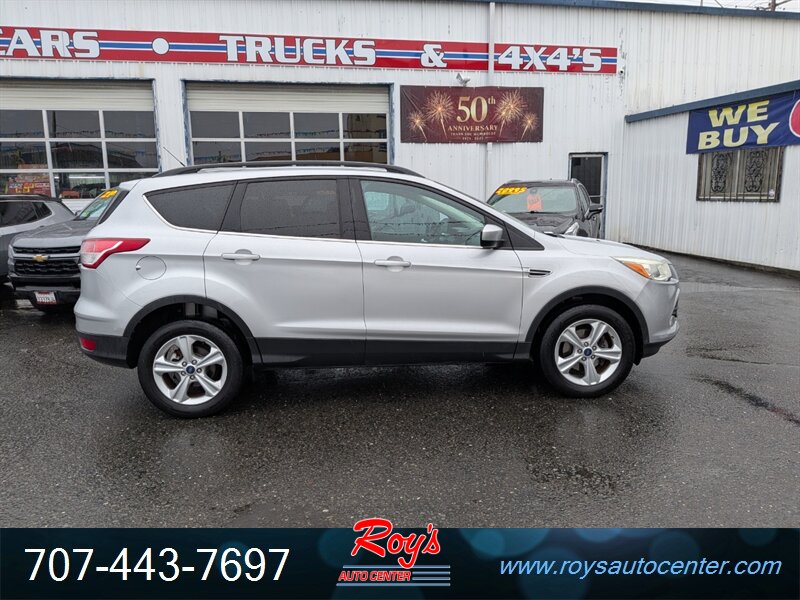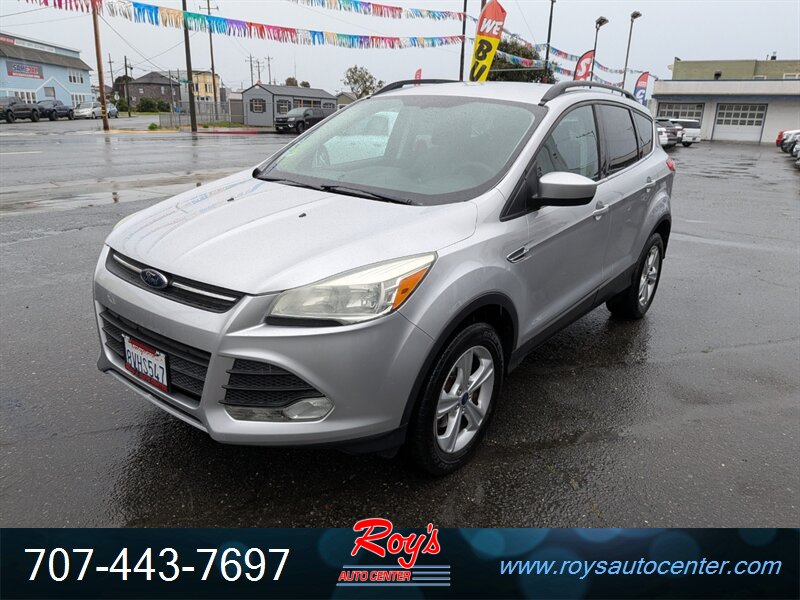 2013 Ford Escape SE in Ingot Silver Metallic with Medium Light Stone cloth interior. Powered by a 1.6L EcoBoost turbo I4 (178 hp, 184 lb-ft) paired with a 6-speed automatic, this Escape returns an EPA-estimated 23 MPG city and 33 MPG highway and has under 132,000 miles (averaging less than 10,000 miles/year). Factory equipment includes alloy wheels and roof rails, power windows/locks/mirrors, remote keyless entry, air conditioning, cruise control, tilt/telescoping steering wheel, cloth seating with 60/40 split-fold rear seats and ample cargo space. Infotainment/safety features include Ford SYNC with Bluetooth, AM/FM/CD/MP3 with auxiliary/USB inputs, steering-wheel audio/phone controls, ABS, traction and stability control, multiple airbags, tire pressure monitoring and LATCH anchors. Vehicle is in excellent overall condition with a clean CARFAX.