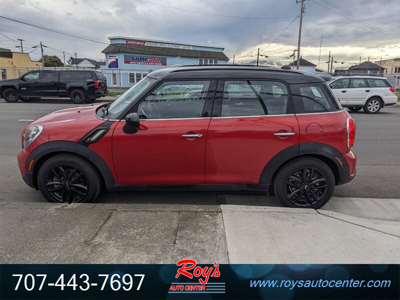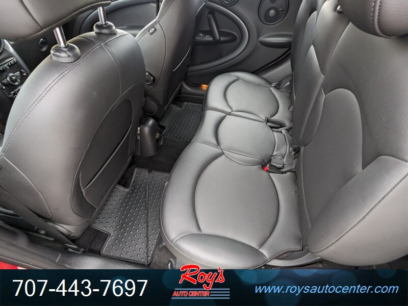 Introducing the 2013 MINI Countryman Cooper S, a compact SUV that combines style with performance. Powered by a spirited 1.6L Turbo I4 engine, it delivers 181 horsepower and 177 lb-ft of torque, ensuring an engaging driving experience. With a striking Blazing Red exterior and a sophisticated Carbon Black leatherette interior, this vehicle stands out on the road.