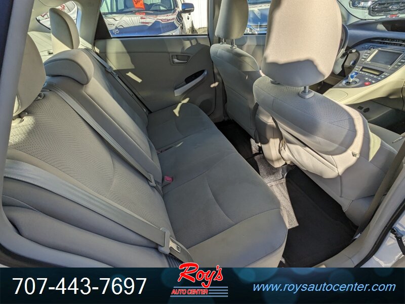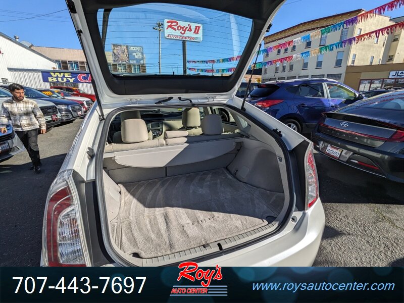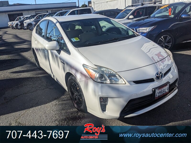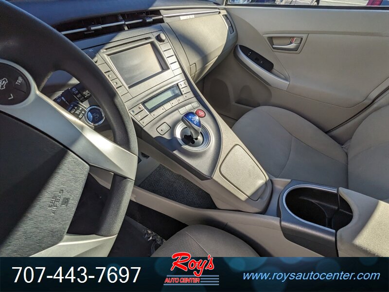 2013 Toyota Prius One with a 1.8L Hybrid I4 (combined system output 134 hp) and continuously variable transmission (CVT). Factory-standard equipment includes Toyota’s Hybrid Synergy Drive with regenerative braking, EV/Eco driving modes and an energy-flow display; automatic climate control; cloth seating with 60/40 split-folding rear seats and underfloor cargo storage; steering-wheel audio and phone controls; AM/FM/CD/MP3 audio with auxiliary and USB inputs and Bluetooth hands-free capability; power windows, power door locks and power mirrors; cruise control; 15-inch wheels with covers and halogen headlamps.