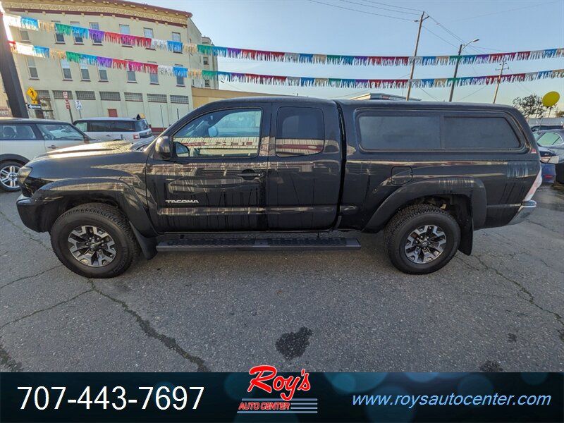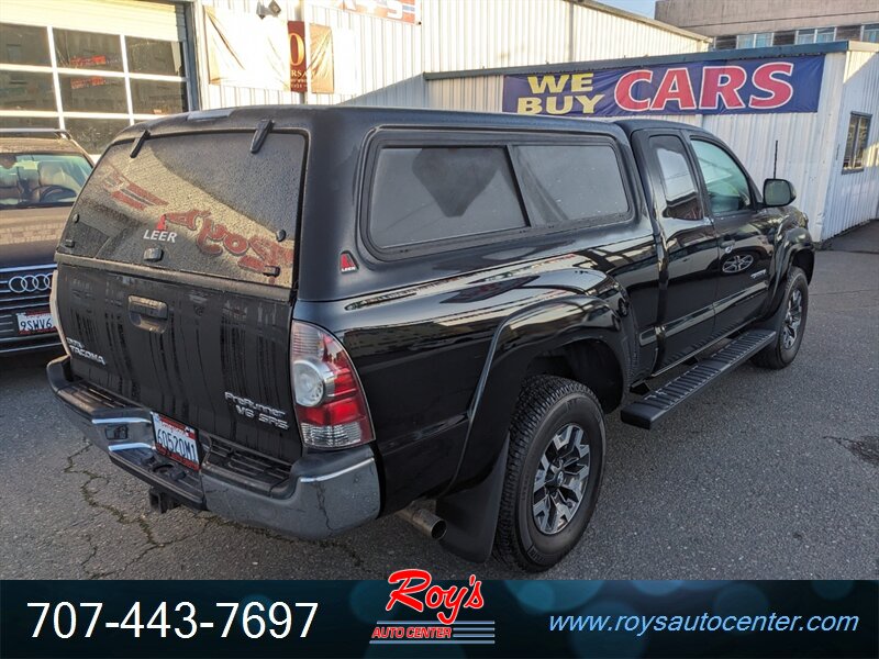 2013 Toyota Tacoma PreRunner V6 in Black with Graphite cloth interior, powered by a 4.0L V6 that delivers 236 hp and 266 lb-ft of torque. Features include the V6 PreRunner chassis, air conditioning, cruise control, power windows and door locks with remote keyless entry, tilt steering, cloth seats with center console storage, alloy wheels, anti-lock brakes, Vehicle Stability Control with traction control, multiple airbags (front, seat-mounted side and side-curtain), tire pressure monitoring, Leer camper shell and running boards. This truck is in excellent overall condition with a clean CARFAX and under 114,000 miles (averaging less than 9,000 miles per year).