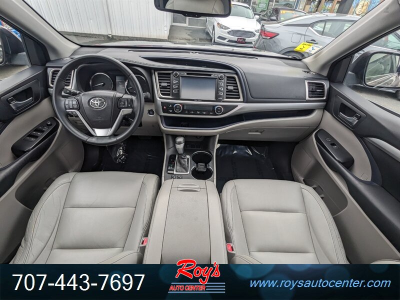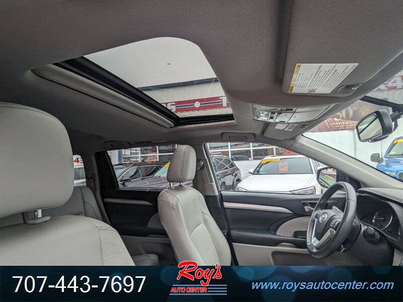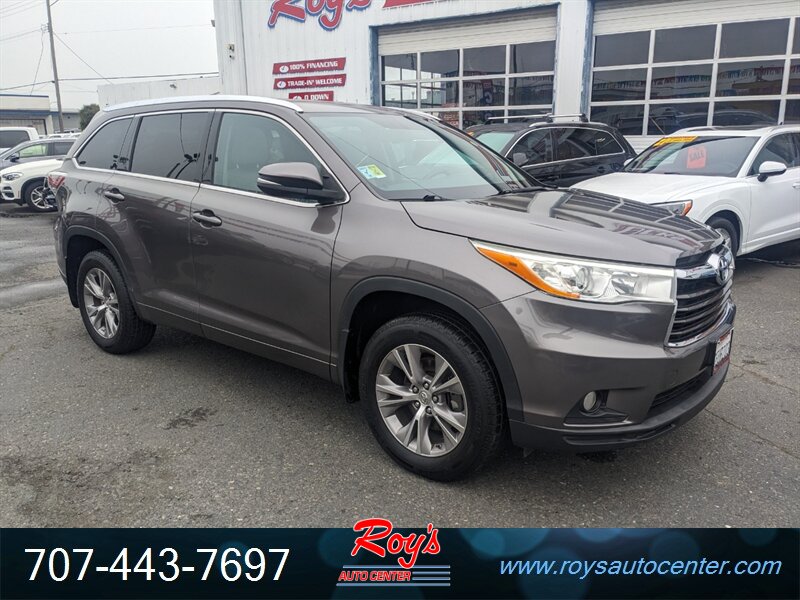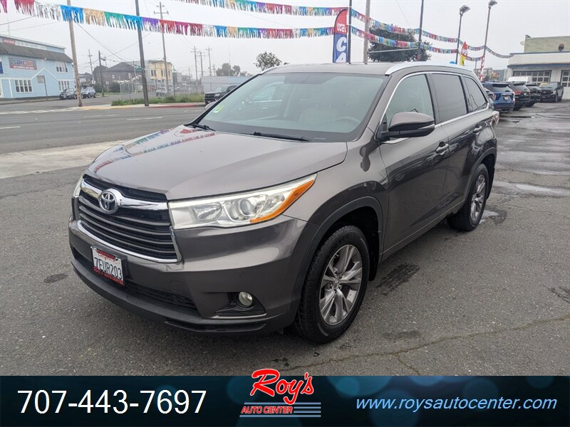 2014 Toyota Highlander XLE finished in Predawn Gray Mica with Almond leather interior, powered by the factory 3.5L V6 producing 270 hp and 248 ft. lbs. of torque. Factory equipment includes leather-trimmed seating with heated front seats, power-adjustable driver seat, tri-zone automatic climate control, tilt-and-telescoping steering wheel with audio and cruise controls, Bluetooth hands-free and audio streaming, rearview camera, Entune-compatible audio with USB/AUX, roof rails and 18-inch alloy wheels, plus third-row seating for added passenger capacity. This vehicle has under 105,000 miles (averaging less than 9,000 miles per year), is in excellent overall condition, and has a clean CARFAX report.