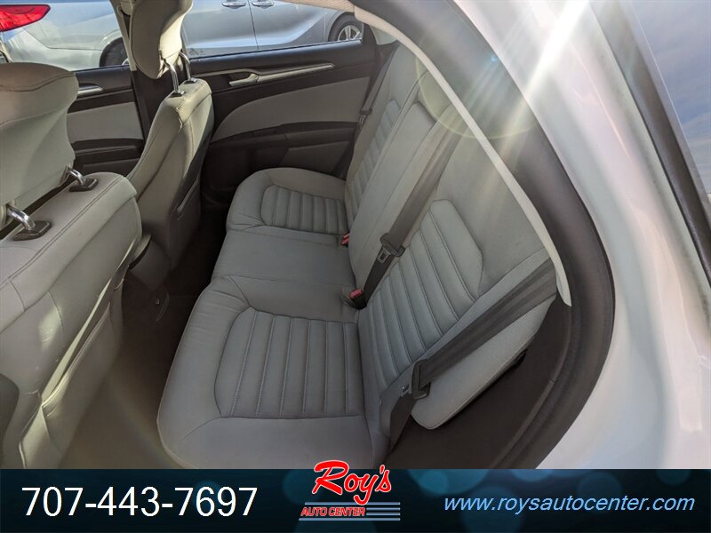 Introducing the 2015 Ford Fusion S, a reliable sedan that combines efficiency with comfort. Powered by a robust 2.5L I4 engine, it delivers 175 horsepower and 175 ft-lbs of torque, ensuring a smooth driving experience. This vehicle features an Oxford White exterior paired with an Earth Gray interior, providing a clean and sophisticated look.