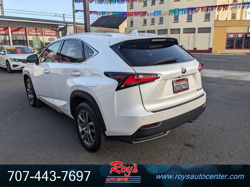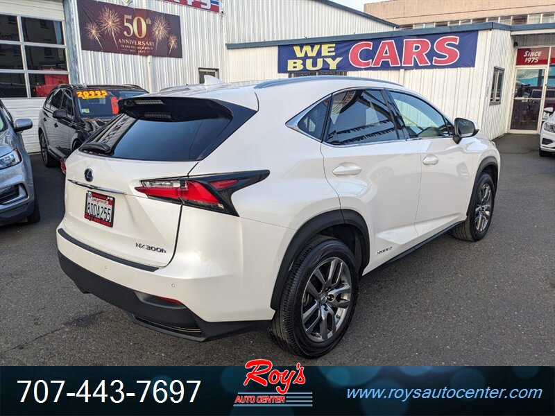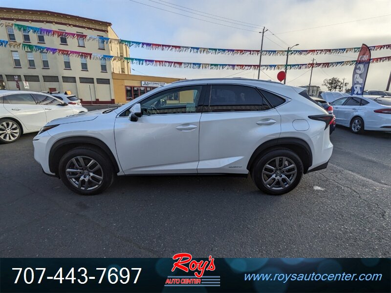 2015 Lexus NX 300h AWD finished in Eminent White Pearl with Creme NuLuxe leatherette seating. Powered by a 2.5L hybrid I4 and electric motors producing a combined 194 hp with an electronic CVT and all-wheel drive, this vehicle averages excellent fuel economy (33 MPG city / 30 MPG highway) and has under 86,000 miles (roughly <8,000 miles per year). Factory equipment includes dual-zone automatic climate control, power front seats, keyless entry with push-button start, Bluetooth hands-free phone and audio streaming, AM/FM/CD audio with USB/AUX inputs, rearview camera, steering-wheel audio and cruise controls, LED daytime running lights and projector headlights, alloy wheels, power windows/locks/mirrors, and full electronic stability/traction control with ABS and multiple airbags. The vehicle is in excellent overall condition.
