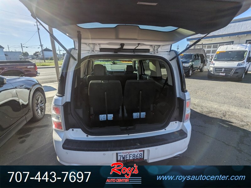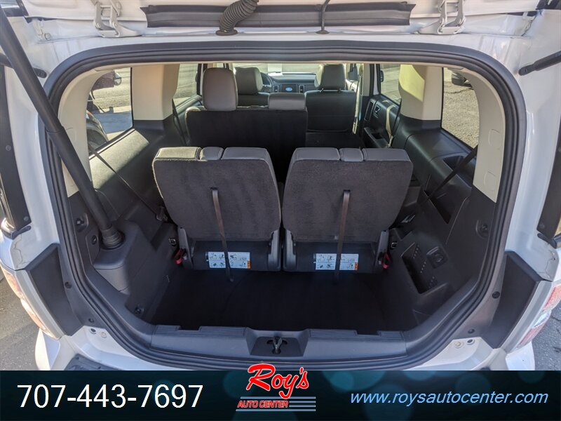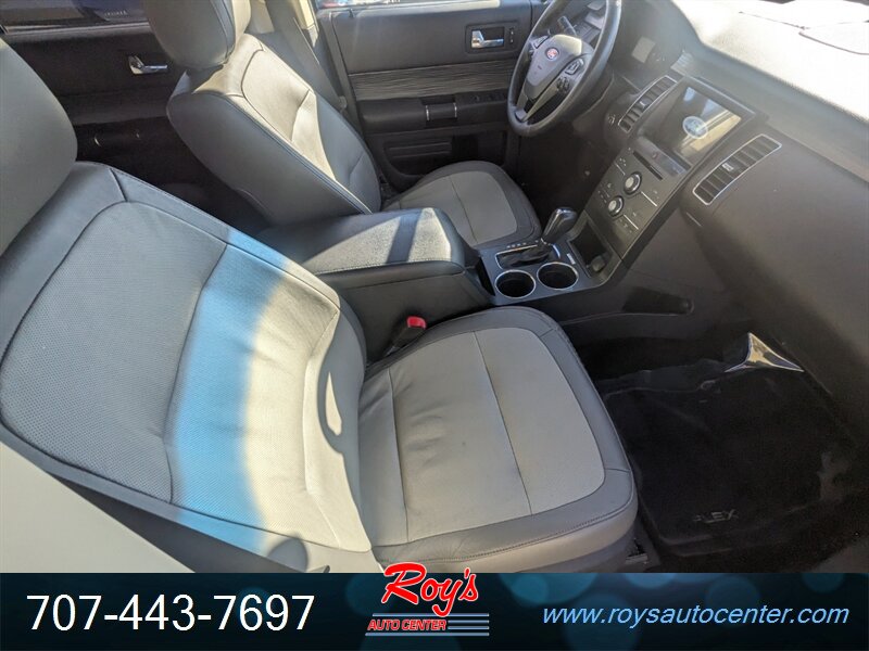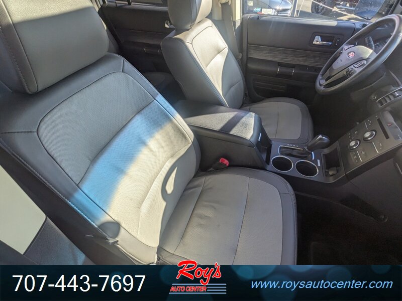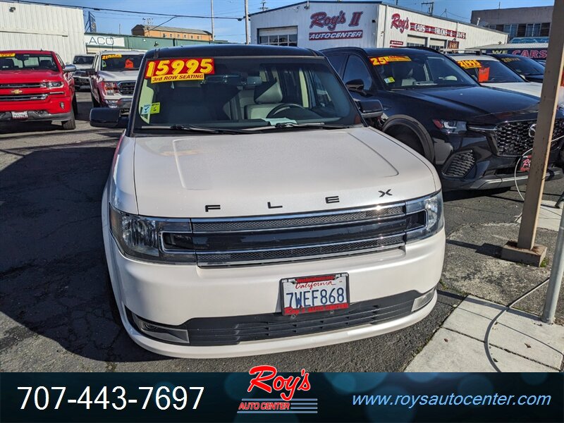 The Flex SEL comes well-equipped with a range of factory default features, including 3rd-row seating, a power-adjustable driver's seat, and tri-zone automatic climate control for optimal comfort. The SYNC infotainment system with a 7-inch touchscreen provides seamless connectivity, while Bluetooth technology allows for hands-free calls and audio streaming. Additional features include a rearview camera, parking sensors, and a premium audio system that enhances your driving experience. With all-wheel drive capability, the Ford Flex ensures stability and confidence in various driving conditions, making it a great choice for both urban and rural settings.