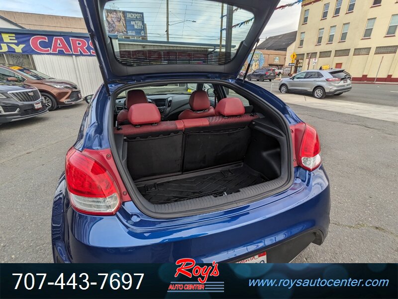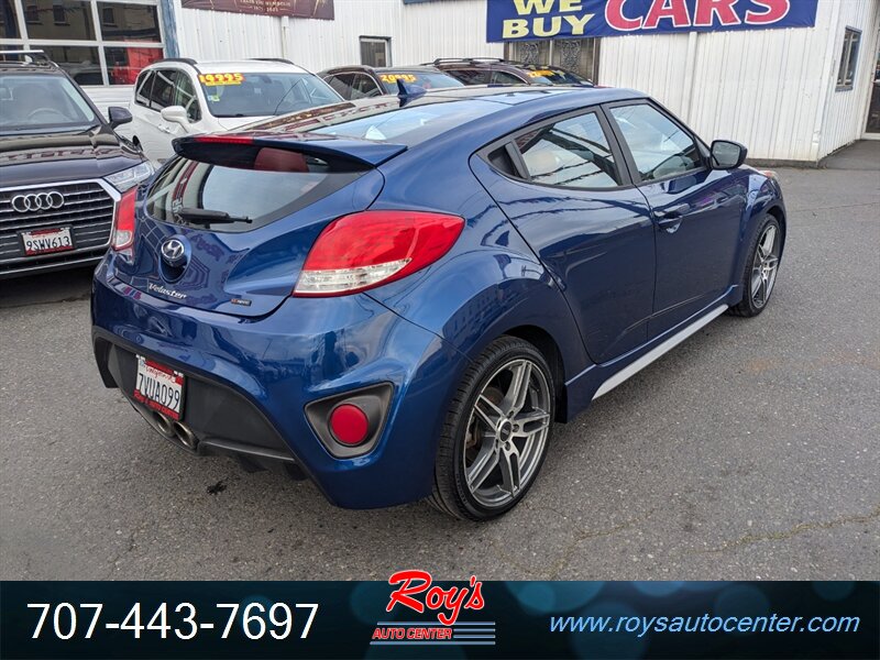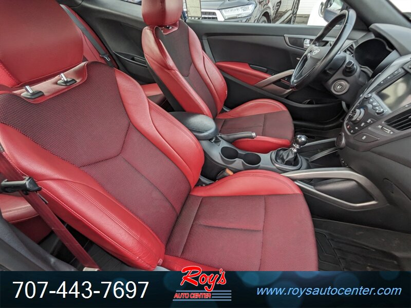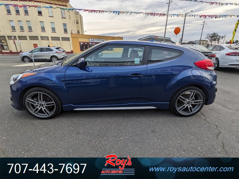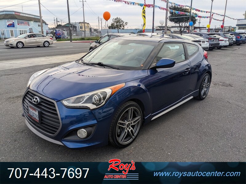 2016 Hyundai Veloster Turbo R-Spec — Pacific Blue exterior, Red leather interior, excellent overall condition. Powered by a 1.6L turbocharged inline-4 producing 201 hp and 195 lb-ft, paired with a 6-speed manual transmission.