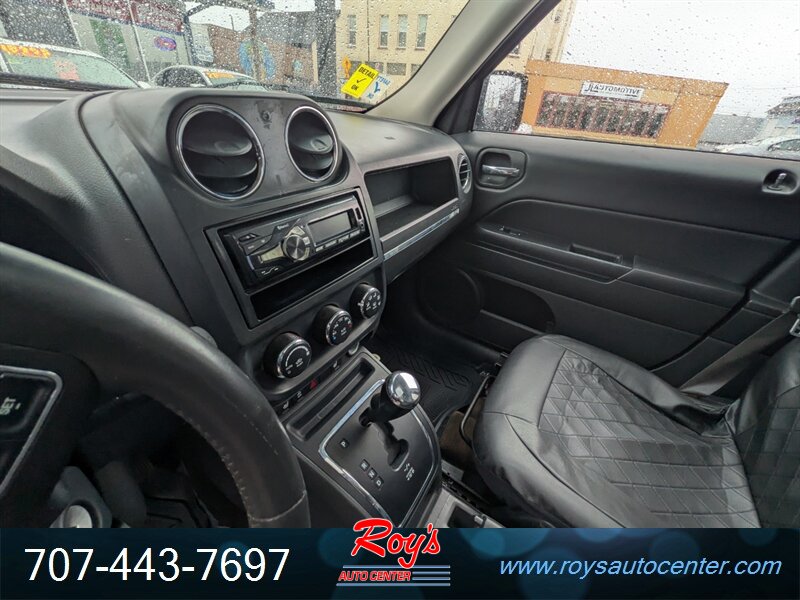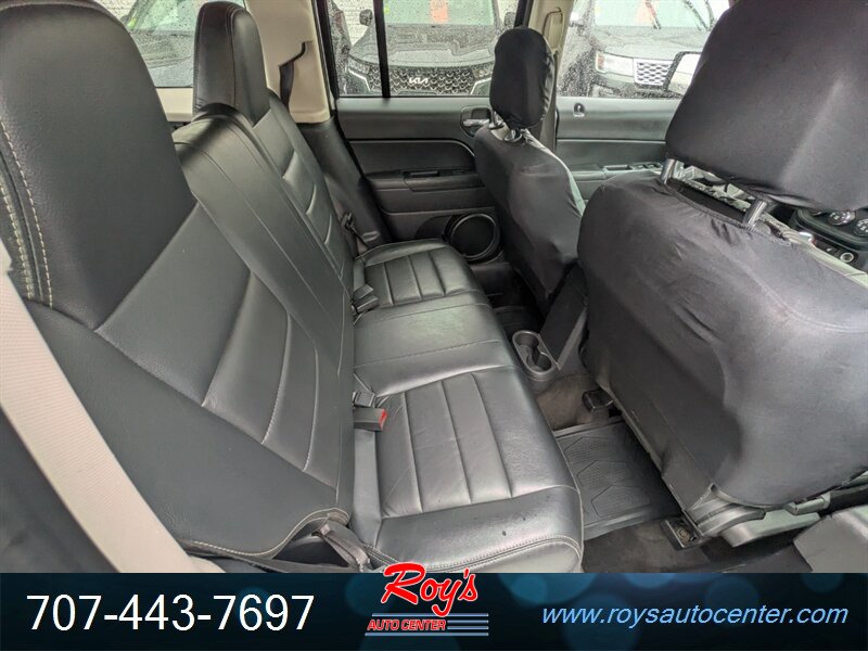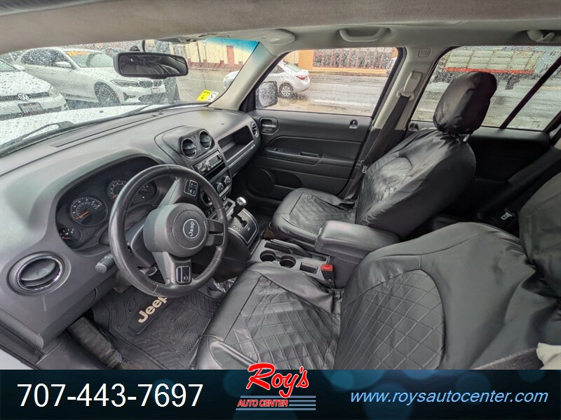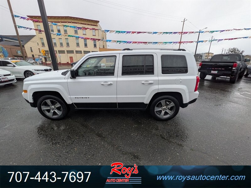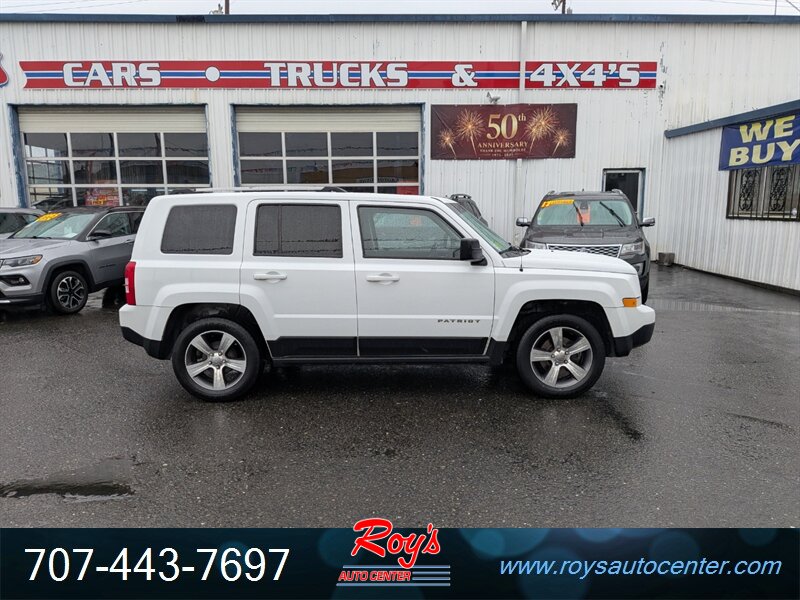 2016 Jeep Patriot High Altitude with a 2.0L I4 (158 hp, 141 lb-ft), finished in Bright White Clear Coat with Black leather-trimmed interior and in excellent overall condition. Factory equipment includes leather-trimmed seating surfaces, a leather-wrapped steering wheel with mounted audio controls, air conditioning, cruise control, power windows and door locks, and remote keyless entry. Infotainment features include Uconnect AM/FM/MP3 with Bluetooth hands-free calling and audio streaming, plus USB and auxiliary inputs. Standard safety and convenience items include front and side airbags, side-curtain airbags, ABS, electronic stability and traction control, tire pressure monitoring, a 60/40 split-folding rear seat and roof rails.