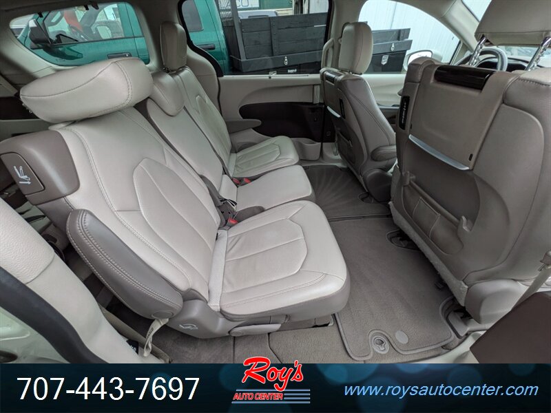 2017 Chrysler Pacifica Touring-L Plus in Tusk White with Cognac/Alloy/Toffee leather interior. Powered by the Pentastar 3.6L V6 producing 287 hp and 262 lb-ft of torque mated to the factory 9-speed automatic and front-wheel drive. Factory equipment includes three-row leather-trimmed seating, heated front seats, power-adjustable driver’s seat, tri-zone automatic climate control, power sliding doors, power liftgate and remote start, keyless entry with push-button start, and Uconnect 8.4-inch touchscreen with Bluetooth, USB inputs and navigation (Apple CarPlay/Android Auto compatible). Safety and convenience features include a rearview camera, rear parking sensors, blind-spot monitoring with rear cross-path detection, ABS, traction and stability control, and multiple airbags. Below 90,000 miles (averaging under 9,000 miles/year), one owner, clean CARFAX and in excellent overall condition.