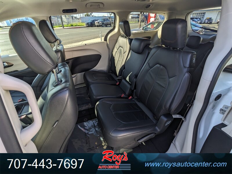 2017 Chrysler Pacifica Touring-L powered by the Pentastar 3.6L V6 (287 hp / 262 ft-lbs) paired with a 9-speed automatic. Factory-equipped features include Uconnect touchscreen infotainment with Bluetooth and smartphone integration, leather-trimmed Black/Alloy seats, heated front seats, power-adjustable driver seat, tri-zone automatic climate control, keyless entry with push-button start and remote start, power sliding doors and power liftgate, second-row Stow ’n Go seating, rearview camera and common driver-assist systems, plus alloy wheels. Finished in Bright White Clear Coat with a Black/Alloy leather interior, this one-owner Pacifica has a clean CARFAX, under 94,000 miles (averaging <10,000 miles/year) and is in excellent overall condition.