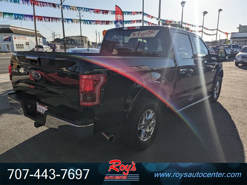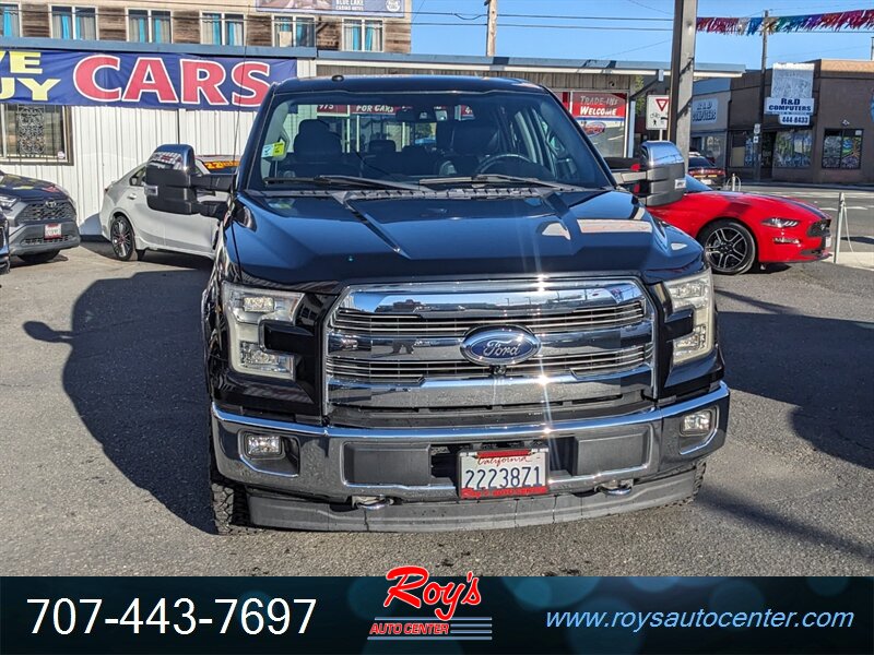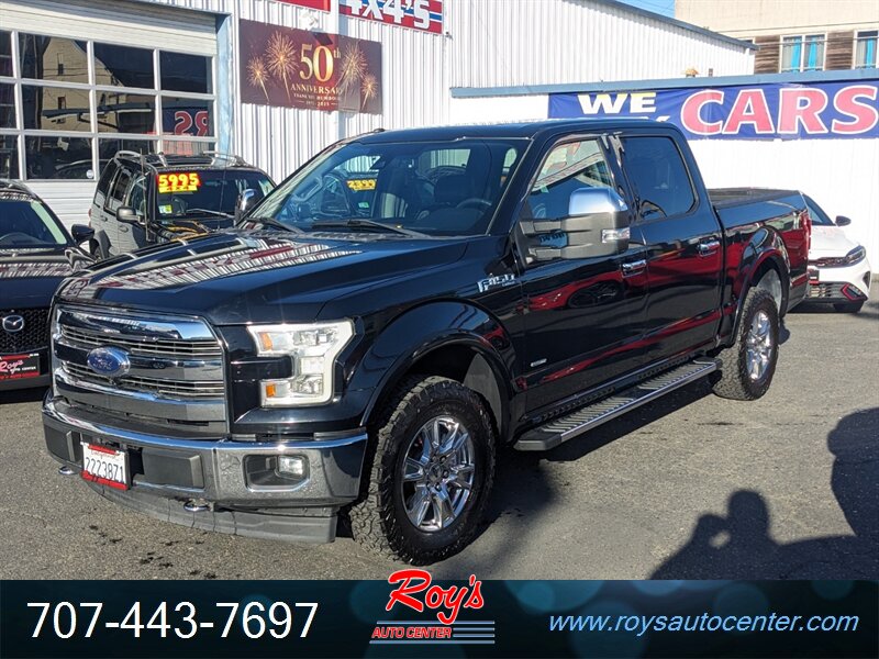 Introducing the 2017 Ford F-150 Lariat, a powerful and versatile truck that combines performance and luxury. Equipped with a robust EcoBoost 3.5L Twin Turbo V6 engine, this vehicle delivers an impressive 375 horsepower and 470 ft-lbs of torque, ensuring a dynamic driving experience. The striking Shadow Black exterior complements the refined black leather-trimmed interior, providing both style and comfort.