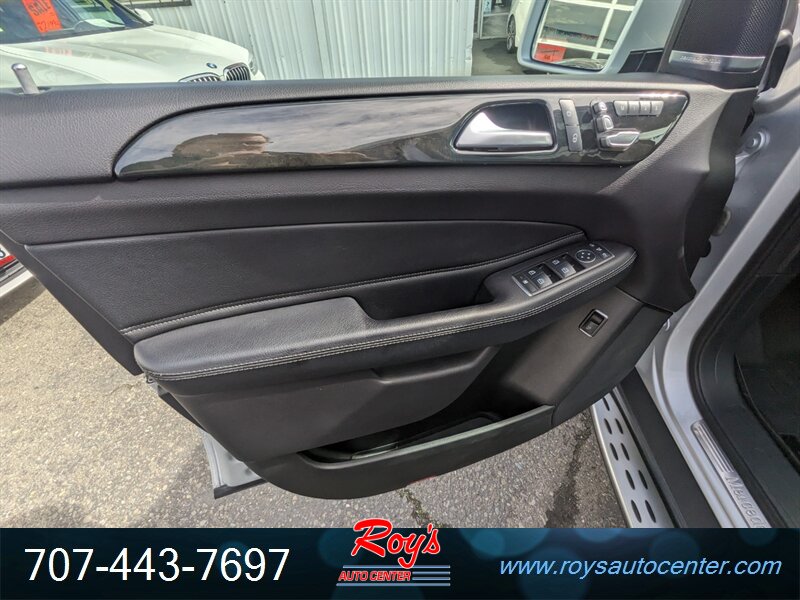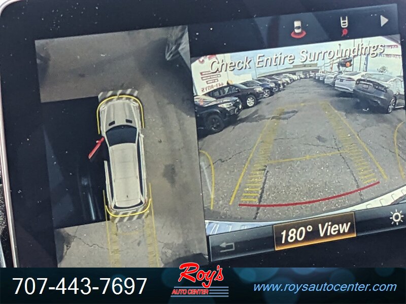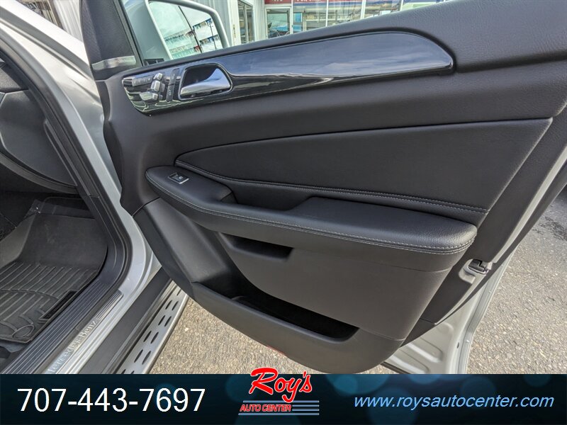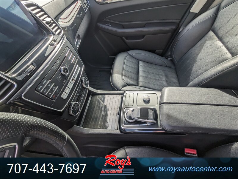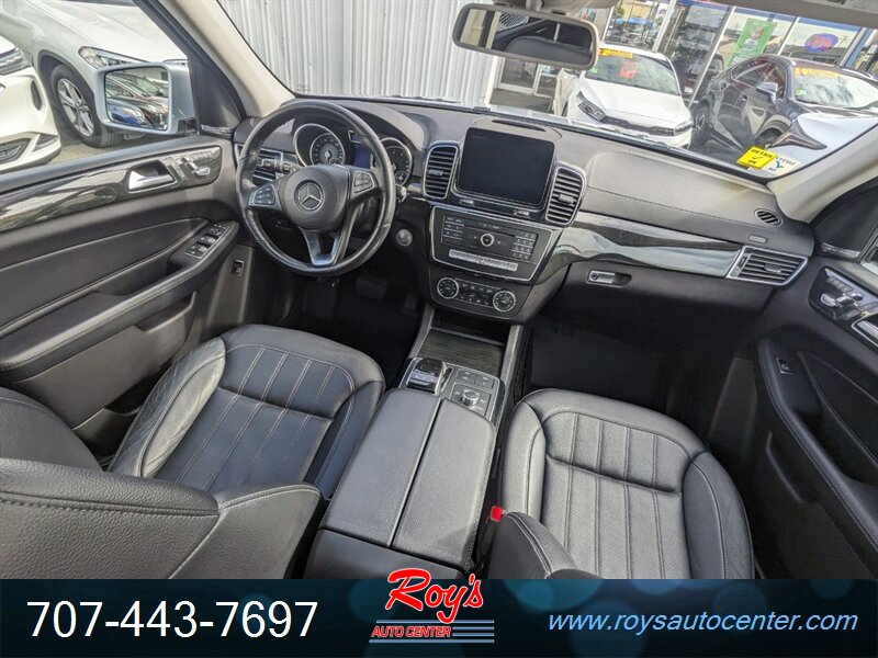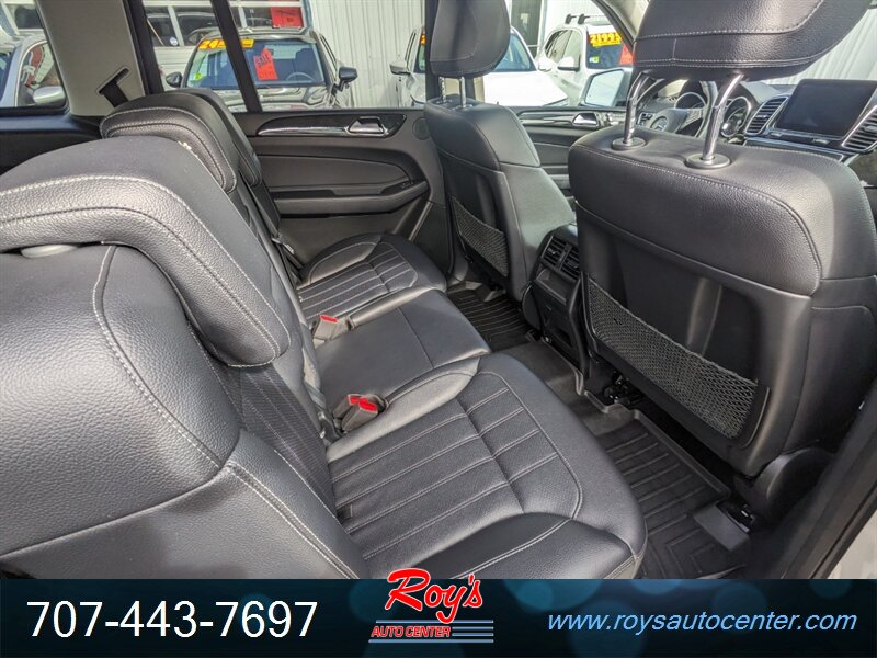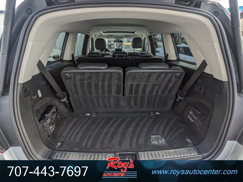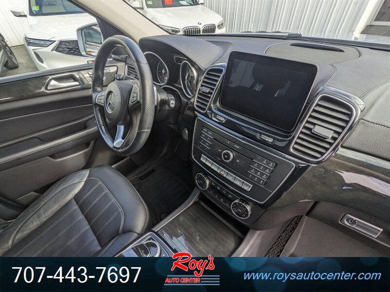 Factory equipment includes Mercedes-Benz 4MATIC all-wheel drive, 9G-TRONIC nine-speed automatic transmission, seven-passenger seating with third-row, premium leather upholstery, power-adjustable front seats with memory, multi-zone automatic climate control, Mercedes-Benz COMAND infotainment with navigation, Bluetooth and USB connectivity, power liftgate, LED exterior lighting, rearview camera with parking sensors, full suite of airbags and electronic stability/traction systems, and standard driver assistance features such as blind-spot monitoring and basic active safety systems.
