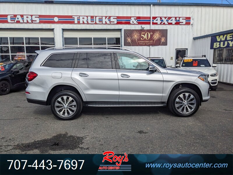 2017 Mercedes-Benz GLS 450 4MATIC AWD in Iridium Silver Metallic with Black leather interior. Powered by a 3.0L twin-turbo V6 (362 hp, 369 lb-ft) mated to a 9-speed automatic; below 97,000 miles (averaging under 10,000 miles/year) and in excellent overall condition.
