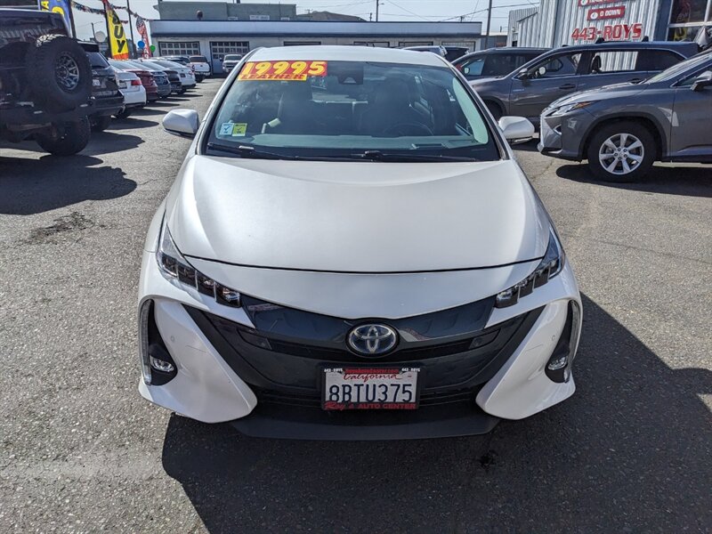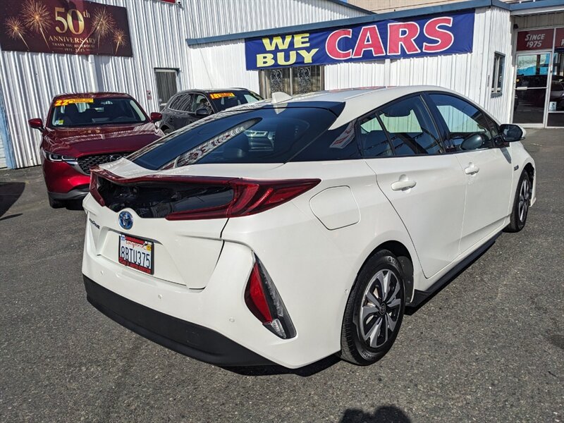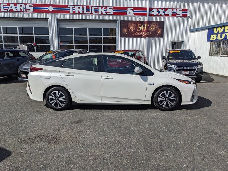 This 2017 Toyota Prius Prime Advanced in Super White with a Black leatherette interior is a fuel-efficient choice, boasting 55 MPG in the city and 53 MPG on the highway. Powered by a 1.8L Plug-in Hybrid I4 121hp engine, this vehicle is in excellent overall condition with only one owner. The factory default features include advanced technology such as a large touchscreen display, navigation system, adaptive cruise control, lane departure alert, heated front seats, and a premium audio system. Experience eco-friendly driving with this sleek and reliable hybrid vehicle. Roy's Auto Center is open 7 days a week. Give us a call at 707-443-7697 or stop by and take it for a test drive today!