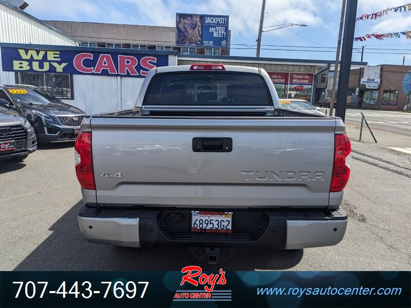 Safety features are also abundant in this Tundra, with options such as a rearview camera, blind-spot monitoring, and rear cross-traffic alert. The truck also includes practical features like a bed liner, tow package, and running boards.
