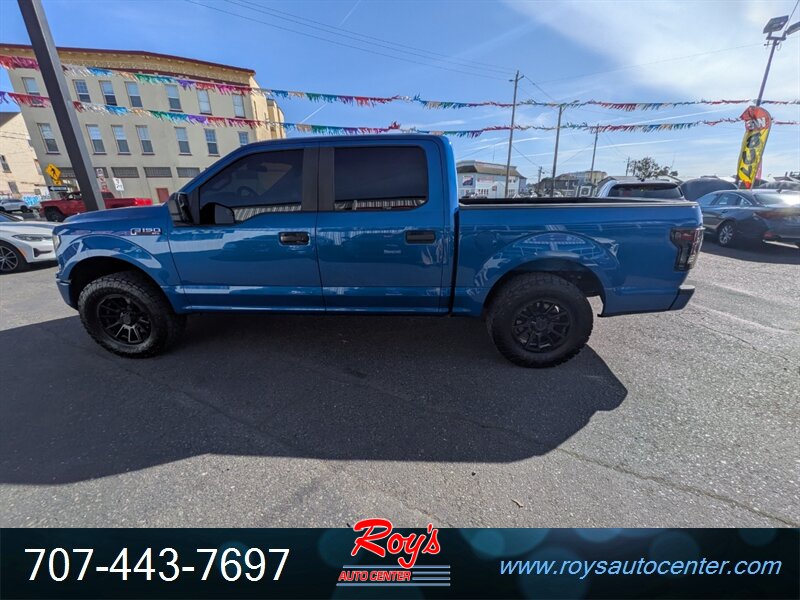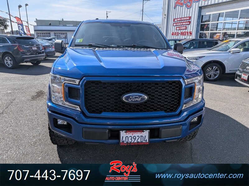 2018 Ford F-150 XL in Lightning Blue with Dark Earth Gray cloth interior in excellent overall condition. Powered by the EcoBoost 2.7L Twin Turbo V6 (325 hp, 400 lb-ft), this truck offers strong, efficient performance.