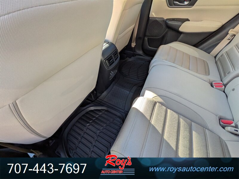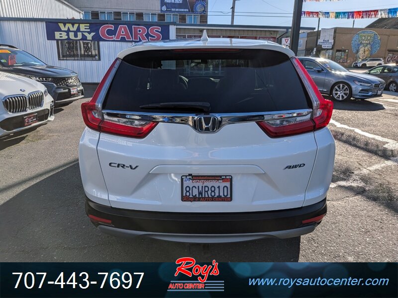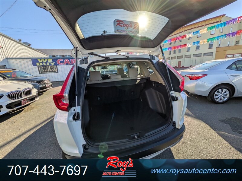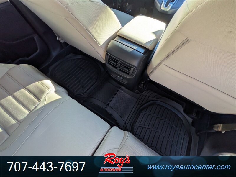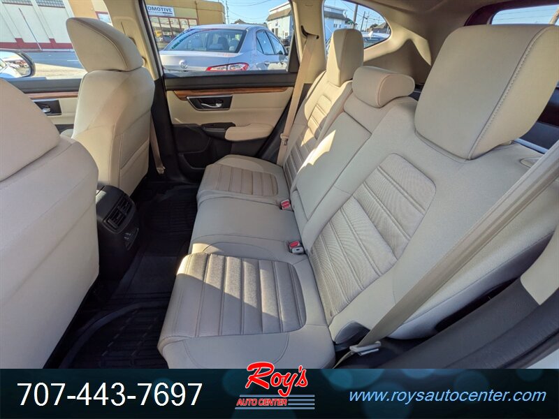 2018 Honda CR-V EX AWD in White Diamond Pearl with Ivory cloth interior, powered by a 1.5L Turbo I4 (190 hp, 179 lb-ft) and CVT — rated 27 MPG city / 33 MPG highway — excellent overall condition. Factory-equipped with all-wheel drive, 7-inch Display Audio with Apple CarPlay/Android Auto and Bluetooth, USB ports, push-button start and remote keyless entry, multi-angle rearview camera, heated front seats, automatic climate control, cruise control, alloy wheels, LED daytime running lights, and standard safety equipment.