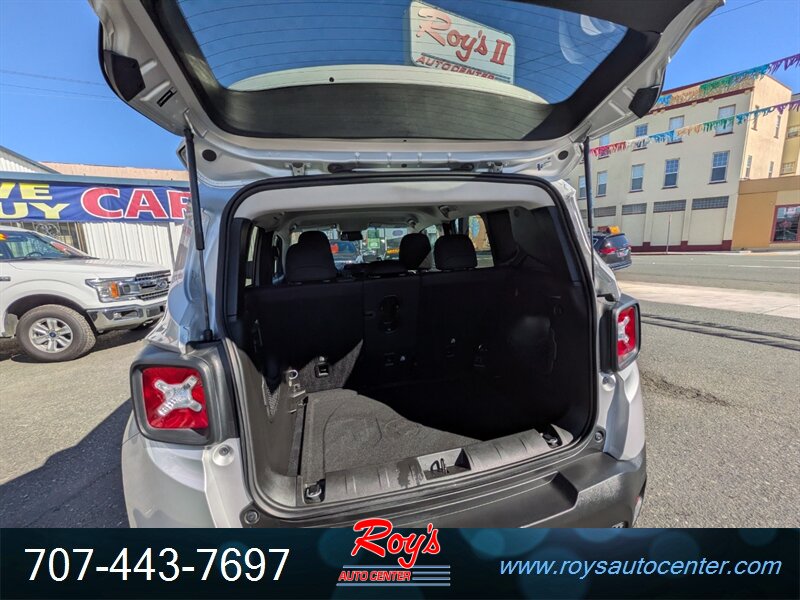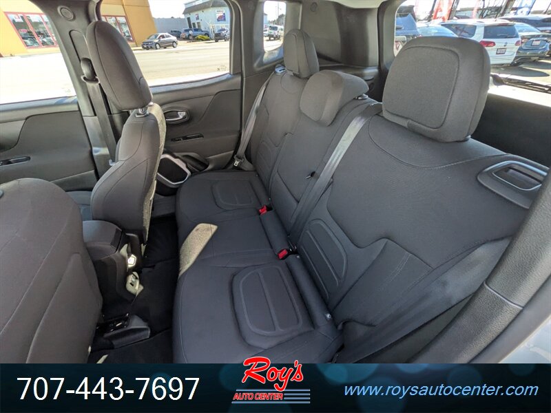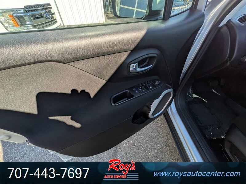 2018 Jeep Renegade Latitude in Granite Crystal Metallic Clear Coat with Black cloth interior. Powered by the factory Tigershark 2.4L FlexFuel I4 (180 hp, 175 lb-ft) mated to the factory automatic transmission. Factory equipment includes power windows and door locks, remote keyless entry, cruise control, tilt-and-telescope steering column with steering-wheel audio and phone controls, cloth seating with 60/40 split-folding rear bench, Uconnect infotainment with Bluetooth hands-free and audio streaming plus USB/AUX inputs, rearview camera, multiple airbags and standard electronic stability and traction control. Excellent overall condition with under 34,000 miles (averaging <4,000 miles/year) and a clean CARFAX.