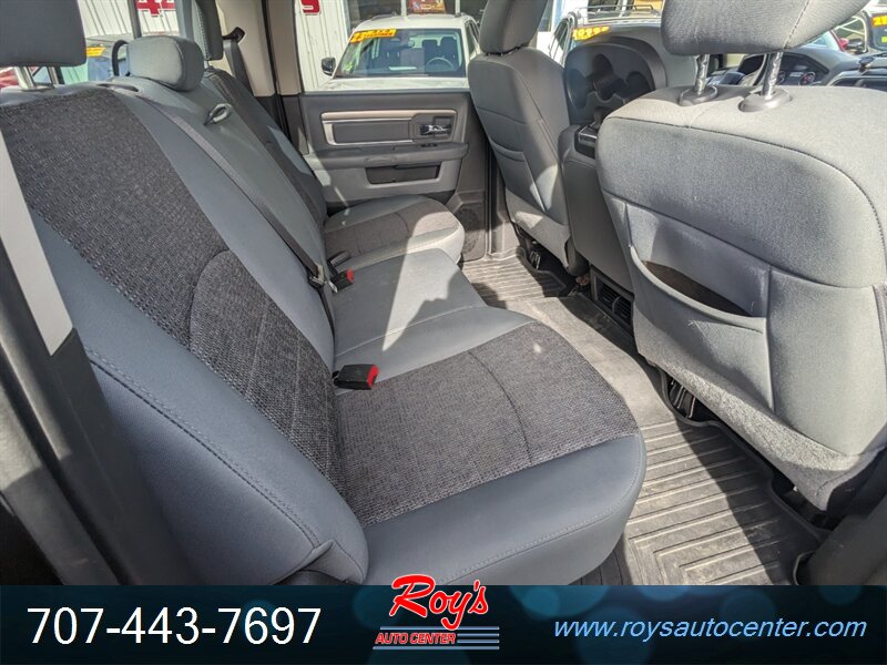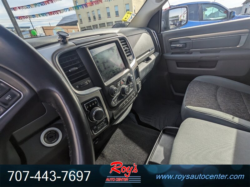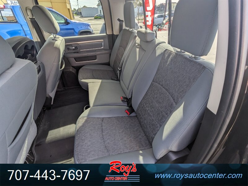 Introducing the 2018 RAM 1500 Big Horn 4WD, a powerful and reliable truck that combines robust performance with impressive features. Under the hood, it boasts a HEMI 5.7L V8 engine, delivering 395 horsepower and 410 ft-lbs of torque for exceptional towing and hauling capabilities. The exterior showcases a sleek Black Clear Coat finish, while the interior is furnished with comfortable Gray cloth seating.