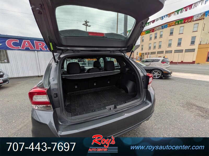 2018 Subaru Impreza Sport AWD powered by a 2.0L H4 with 152 hp and 145 lb-ft of torque, paired with Subaru’s Symmetrical All-Wheel Drive and CVT. Factory equipment includes sport-tuned suspension, alloy wheels, fog lights and a rear spoiler, gray cloth upholstery with supportive sport seats, air conditioning, power windows/locks and remote keyless entry, tilt/telescoping steering wheel with audio and cruise controls, Bluetooth hands-free phone and audio streaming, USB/AUX inputs, Subaru STARLINK infotainment with touchscreen and a rearview camera, plus standard safety features such as multiple airbags, traction and stability control. Exterior is Magnetite Gray Metallic with a gray cloth interior; EPA fuel economy is 22 MPG city and 30 MPG highway. Vehicle is in excellent overall condition with a clean CARFAX.