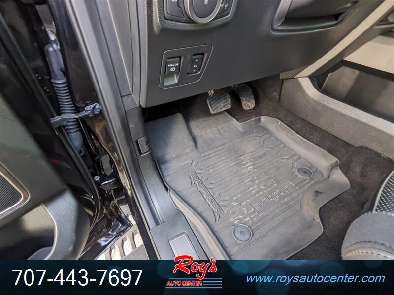 2019 Ford F-150 Raptor 4WD in Agate Black with Black leather interior. Powered by the factory 3.5L EcoBoost Twin-Turbo V6 (450 hp, 510 lb-ft) mated to Ford’s 10-speed automatic and full-time four-wheel drive. Factory-equipped for high-performance off-road use with long-travel suspension and FOX internal-bypass shocks, wider track, underbody skid plates, heavy-duty front/rear tow hooks, electronic locking rear differential, Hill Descent Control and AdvanceTrac stability control. Terrain Management drive modes tailor throttle, transmission and traction control for Normal, Sport, Weather, Sand/Baja and Rock Crawl conditions. Interior factory features include black leather seating, power-adjustable and heated front seats, dual-zone automatic climate control, SYNC 3 infotainment with touchscreen plus Apple CarPlay/Android Auto and Bluetooth, rearview camera, multifunction steering wheel and keyless entry. Well maintained, excellent overall condition with under 78,000 miles (averaging less than 10,000 miles per year).
