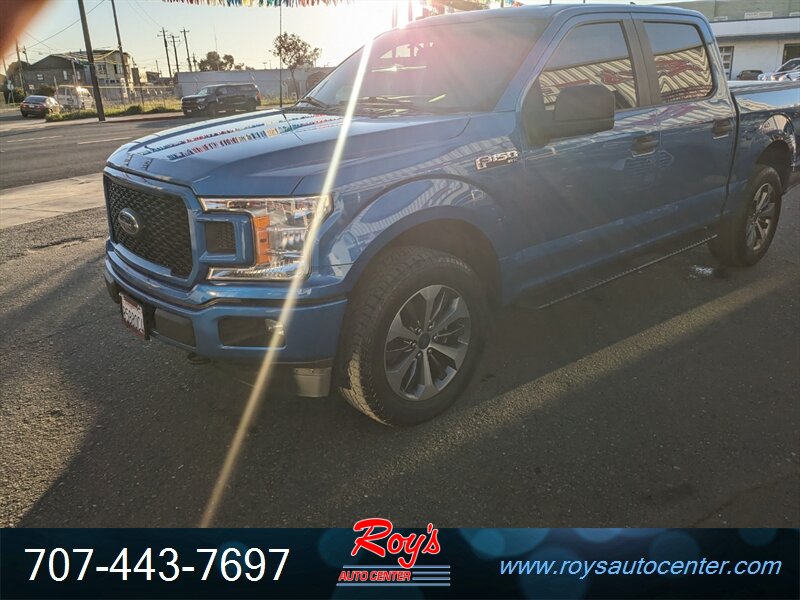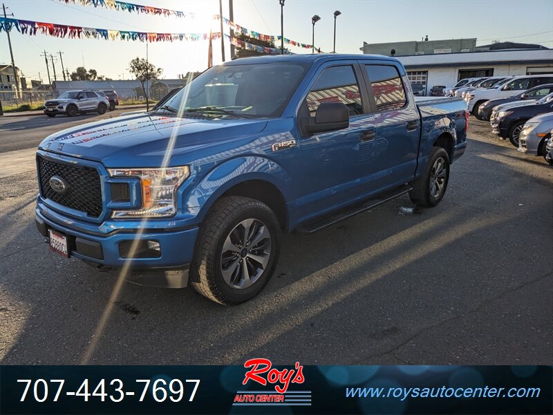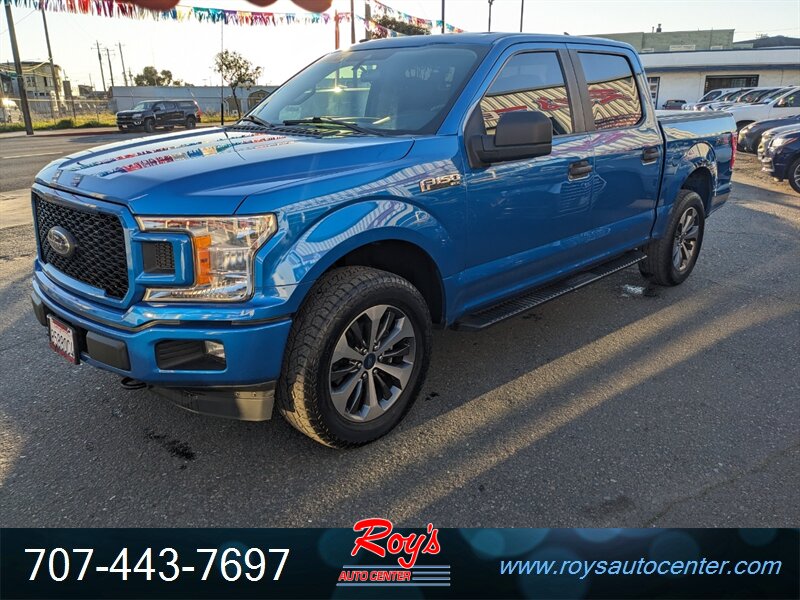 2019 Ford F-150 XL 4WD in Velocity Blue with Dark Earth Gray cloth interior. Powered by the 2.7L EcoBoost twin-turbo V6 (325 hp, 400 lb-ft) mated to Ford’s 10-speed automatic; under 72,000 miles (averaging <9,000 miles/year), excellent overall condition, clean CARFAX.