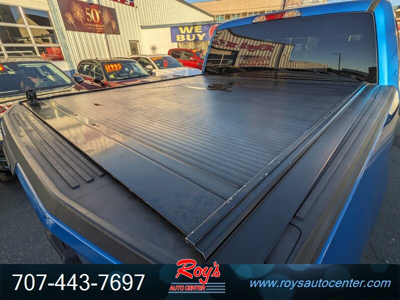 Features includes four-wheel drive, running boards, tonneau bed cover, cloth seating, air conditioning, cruise control and tilt/telescoping steering, power windows and locks, Ford SYNC infotainment with Bluetooth and USB connectivity, rearview camera, and standard safety systems including anti-lock brakes, traction and stability control and multiple airbags.