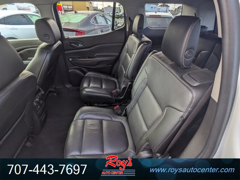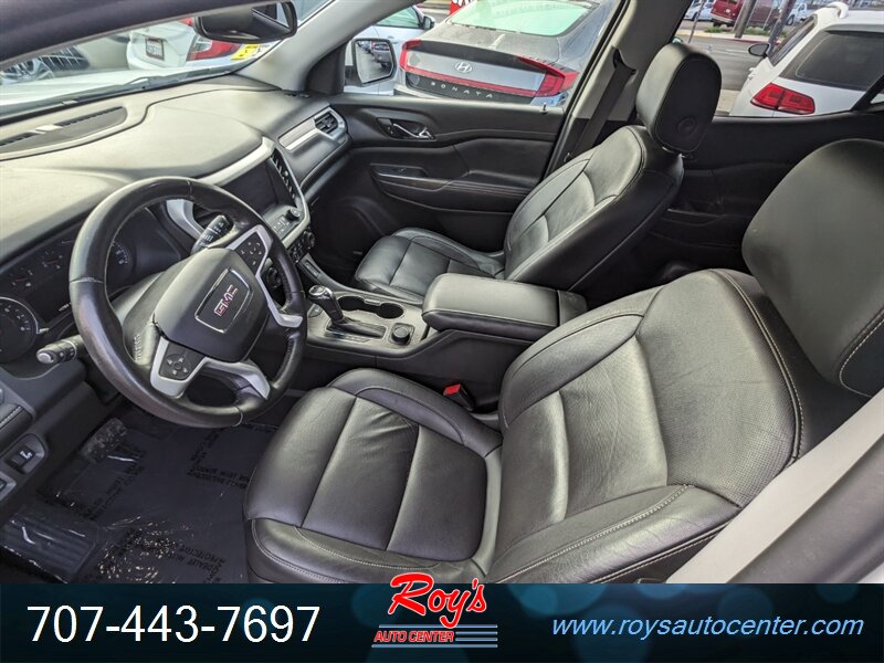 Experience the versatility and performance of the 2019 GMC Acadia SLT-1 4WD, featuring a robust 3.6L V6 engine that delivers 310 horsepower and 271 lb-ft of torque. The exterior is elegantly finished in Summit White, while the interior boasts luxurious Jet Black leather seating for a refined driving experience. This model comes equipped with a range of factory features including 3rd-row seating, a power liftgate, remote start, and a premium audio system. Enjoy added convenience with the advanced infotainment system, which includes Apple CarPlay and Android Auto compatibility, as well as Bluetooth connectivity. Safety is prioritized with features such as a rearview camera, parking sensors, and a suite of advanced airbag systems. This vehicle is in excellent overall condition and comes with a clean CARFAX report, making it a reliable choice for any driver.
