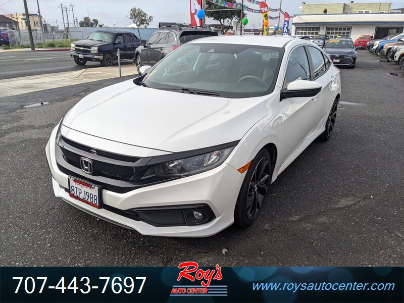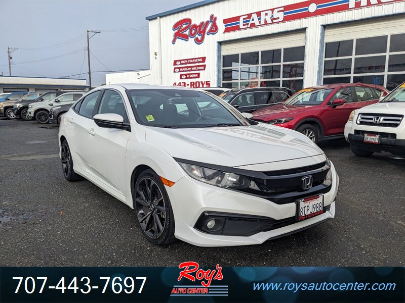 The 2020 Honda Civic Sport offers a dynamic driving experience with its efficient 2.0L I4 engine, delivering 158 horsepower and 138 lb-ft of torque. This model comes equipped with a range of factory features, including a 7-inch touchscreen display, Apple CarPlay and Android Auto compatibility, and a robust sound system with four speakers. Safety is prioritized with Honda Sensing® technology, which includes collision mitigation braking, road departure mitigation, adaptive cruise control, and lane keeping assist. Additional conveniences include keyless entry, a rearview camera, and a spacious interior with ample cargo space. With an impressive fuel economy of 29 MPG in the city and 37 MPG on the highway, this Civic Sport is not only stylish but also practical, making it an excellent choice for daily driving. This vehicle is in excellent overall condition.