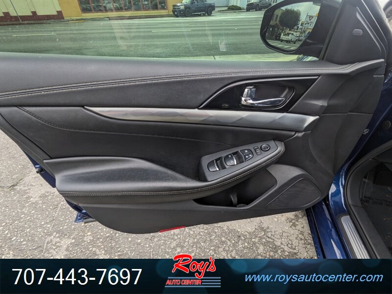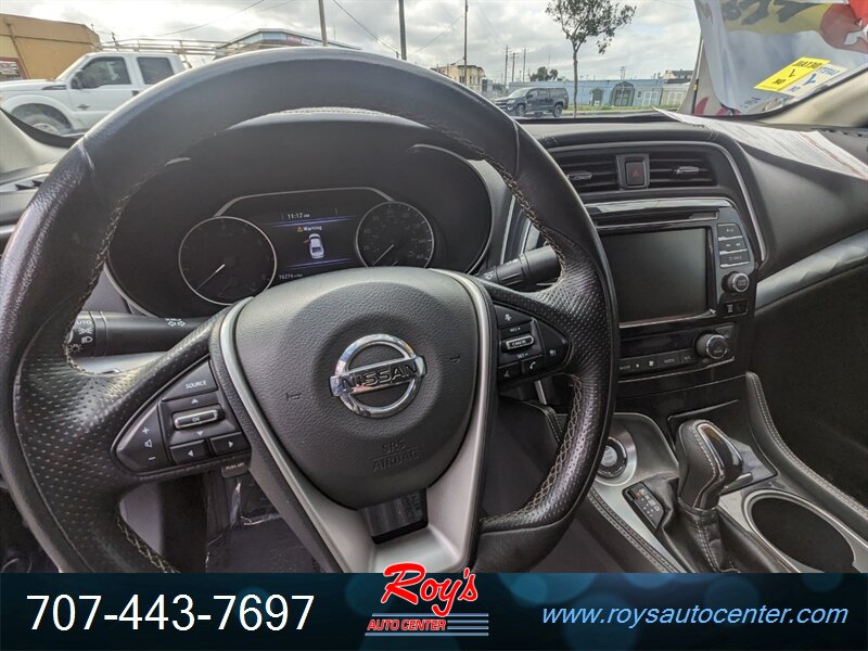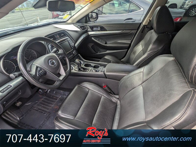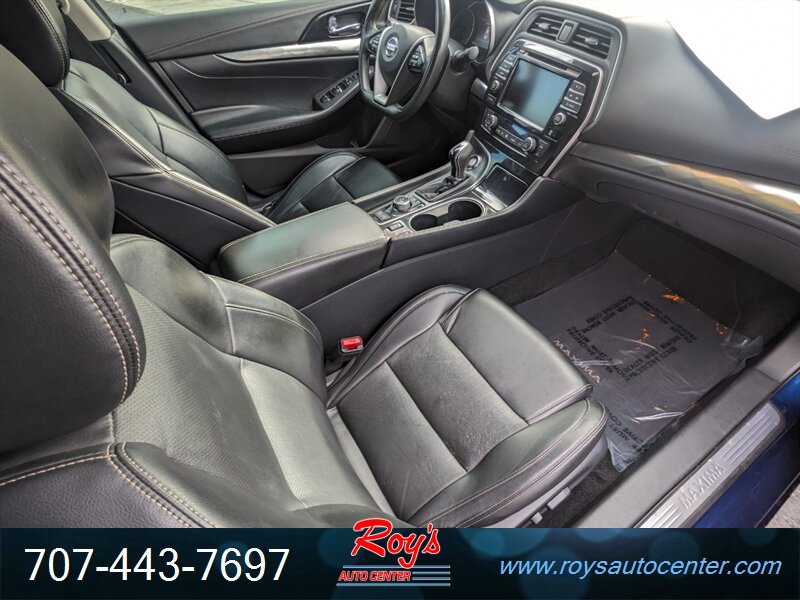 2020 Nissan Maxima 3.5 SV powered by a 3.5L V6 producing 300 hp and 261 lb-ft of torque, paired with Nissan’s Xtronic CVT. Factory-equipped features include front-wheel drive, 19-inch alloy wheels, LED headlights and taillights, dual exhaust, Charcoal Sport leather seating with heated front seats and power-adjustable driver seating, dual-zone automatic climate control, proximity key with push-button start, an 8-inch touchscreen infotainment system with Apple CarPlay/Android Auto, Bluetooth and USB connectivity, satellite radio and a premium audio system. Standard safety and convenience features include a rearview camera, blind-spot warning, rear cross-traffic alert, forward collision mitigation, multiple airbags, stability/traction control and tire pressure monitoring. Exterior is Deep Blue Pearl Metallic, interior Charcoal Sport leather; fuel economy is estimated at 20 MPG city / 30 MPG highway. Vehicle is in excellent overall condition and has a clean CARFAX report.