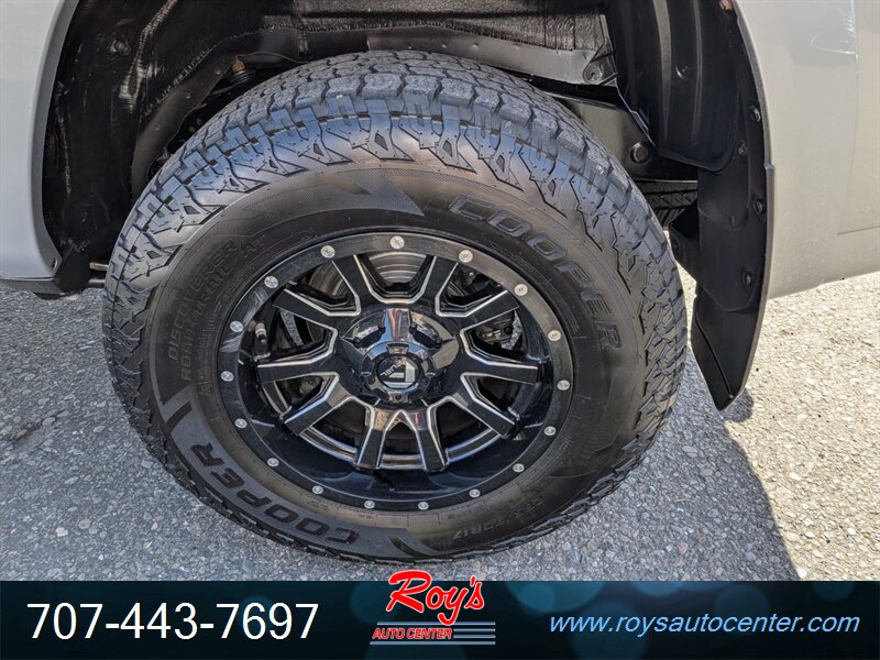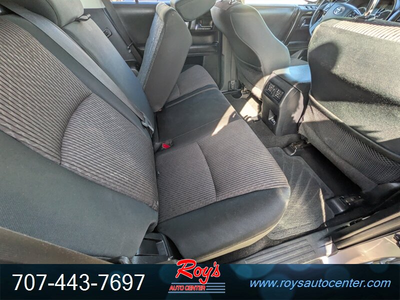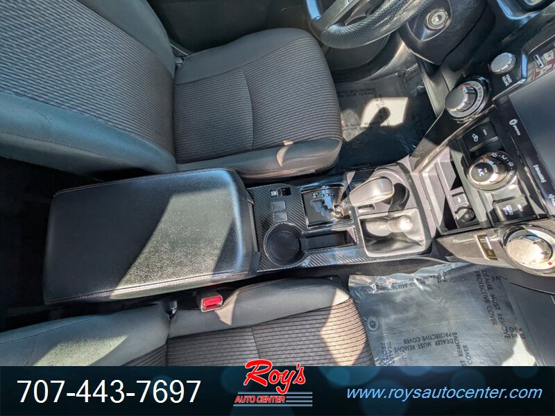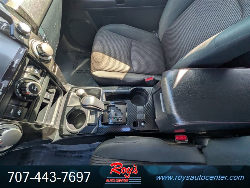 Factory equipment includes TRD Off-Road hardware such as Multi-Terrain Select and CRAWL control, a locking rear differential, TRD-tuned suspension with Bilstein shock absorbers, protective skid plates and roof rails. Interior and convenience features include gray cloth seating with 60/40 split-folding rear seat, Entune infotainment with touchscreen, Bluetooth and USB connectivity, rearview camera, remote keyless entry, power windows/locks/mirrors and cruise control. Standard safety and chassis items include ABS, traction and stability control, multiple airbags and tire pressure monitoring.