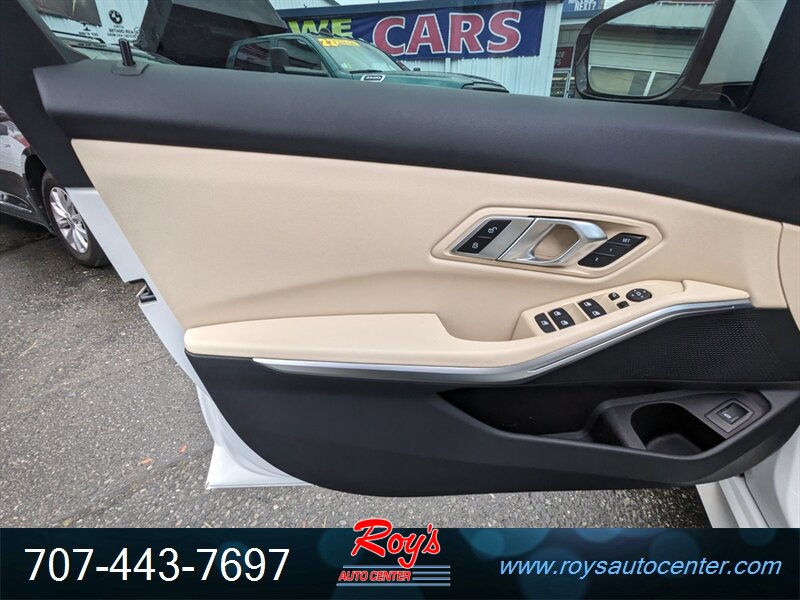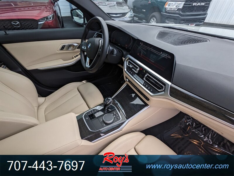 Discover the 2021 BMW 330i, a sophisticated sedan that combines performance with luxury. Powered by a robust 2.0L Turbo I4 engine delivering 255 horsepower and 295 lb-ft of torque, this vehicle offers a dynamic driving experience. The exterior is elegantly finished in Alpine White, while the interior features premium Oyster leather with contrast stitching, creating a refined atmosphere.