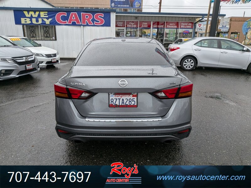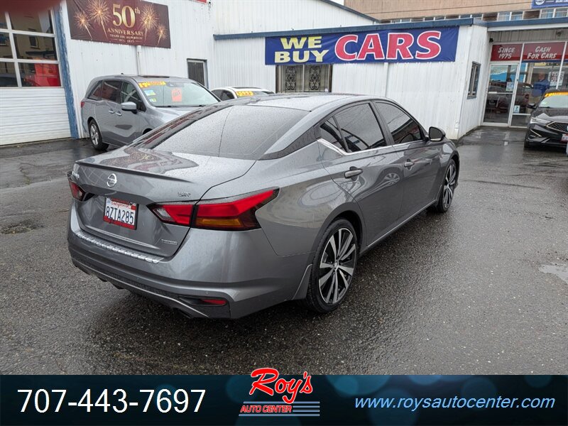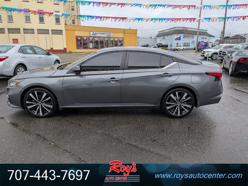 2021 Nissan Altima 2.0 SR in Gun Metallic with Charcoal leather interior, powered by a 2.0L turbocharged I4 making 236 hp and 267 lb-ft — excellent overall condition; EPA-rated 27 MPG city / 37 MPG highway.