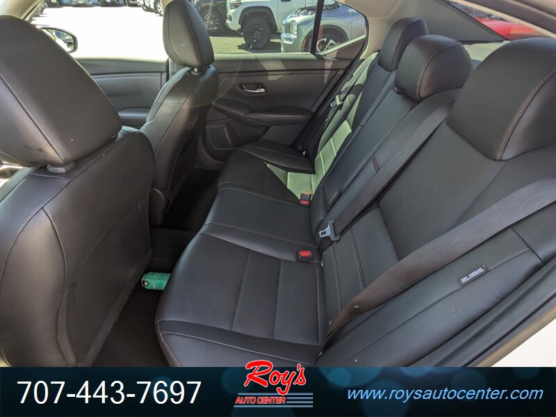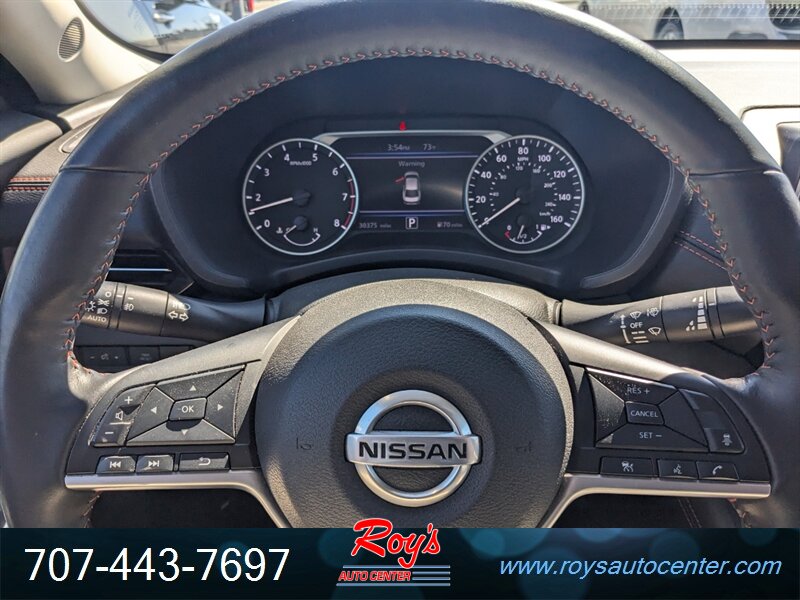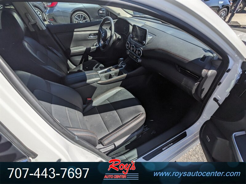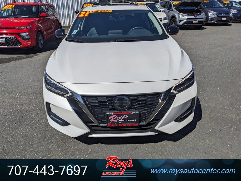 The 2021 Nissan Sentra SR is equipped with a reliable 2.0L I4 engine delivering 149hp and 146ft. lbs. of torque. This model comes with a range of factory default features including automatic emergency braking, lane departure warning, blind-spot warning, rear cross-traffic alert, and intelligent cruise control. With just under 31,000 miles, averaging less than 7,000 miles annually, this Sentra boasts impressive fuel efficiency, achieving 28 MPG in the city and 37 MPG on the highway. In excellent overall condition and with a clean CARFAX report, this vehicle is a great choice for those seeking a dependable and efficient sedan. Roy's Auto Center is open 7 days a week. Give us a call at 707-443-7697 or stop by and take it for a test drive today!
