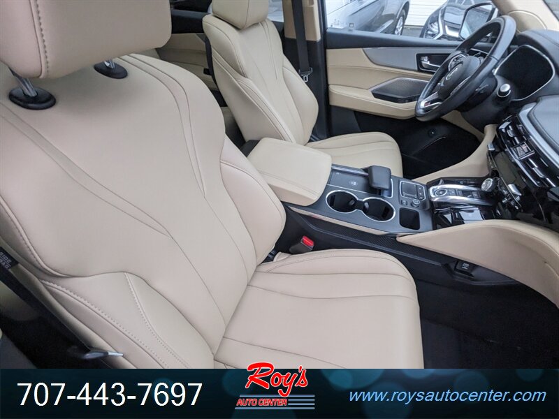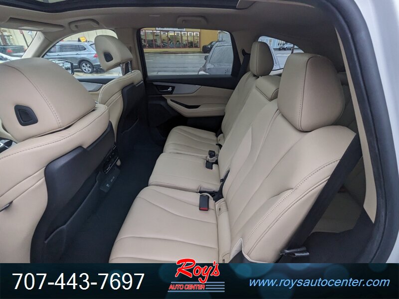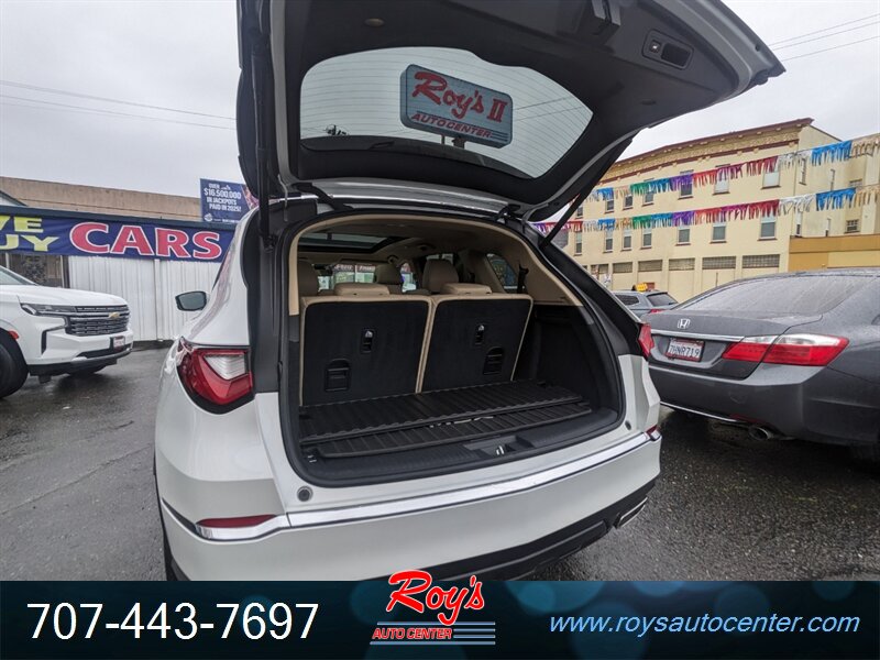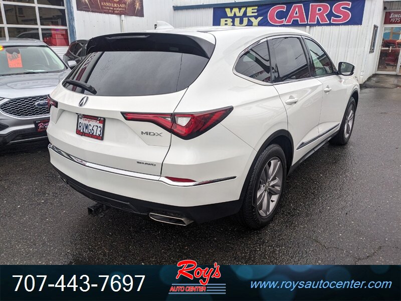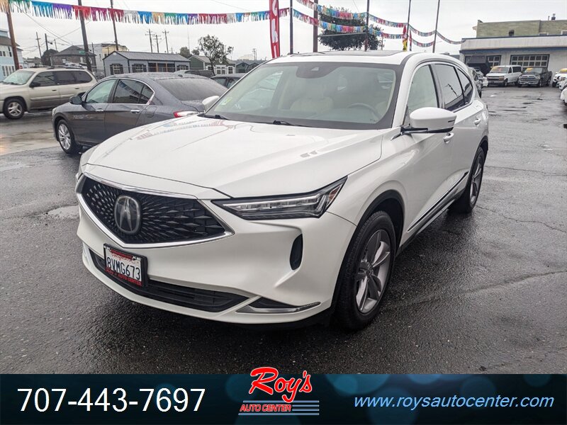 2022 Acura MDX SH-AWD powered by a 3.5L V6 producing 290 hp and 267 lb-ft of torque. Factory-equipped with Acura’s SH-AWD and 9-speed automatic transmission, a full AcuraWatch suite of driver-assist systems (adaptive cruise control, collision mitigation braking, lane keeping assist, and road departure mitigation), LED exterior lighting, power moonroof, power liftgate, tri-zone automatic climate control, power-adjustable front seats with driver memory, proximity keyless entry with push-button start, three-row seating with Parchment leather trim, smartphone integration (Apple CarPlay/Android Auto), Bluetooth and multiple USB ports, and a multi-angle rearview camera. Exterior is Platinum White Pearl; vehicle is in excellent overall condition.