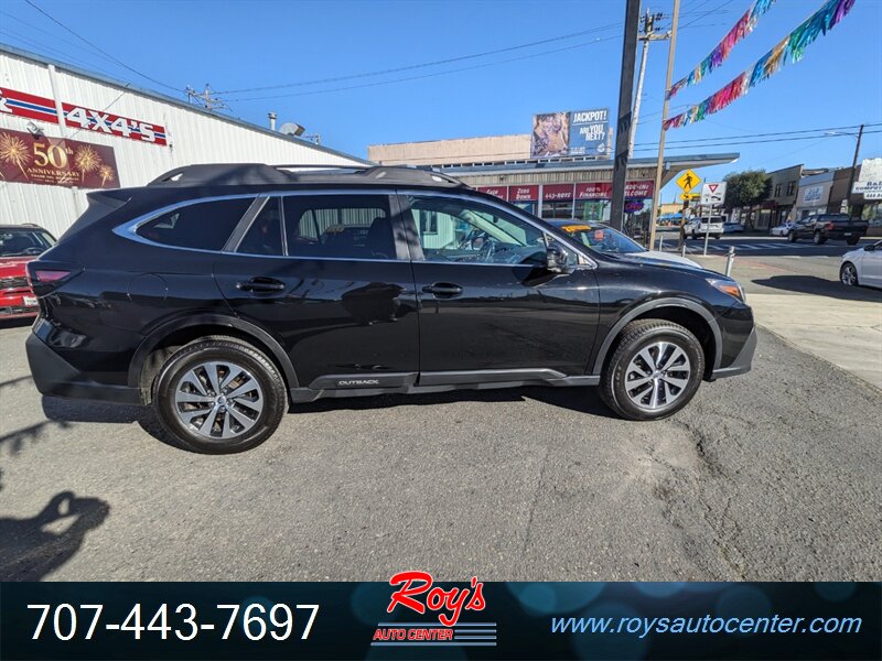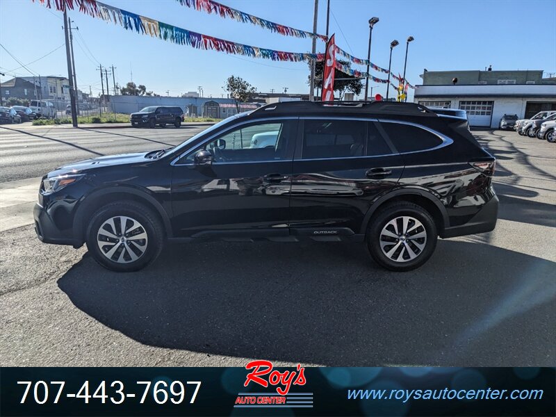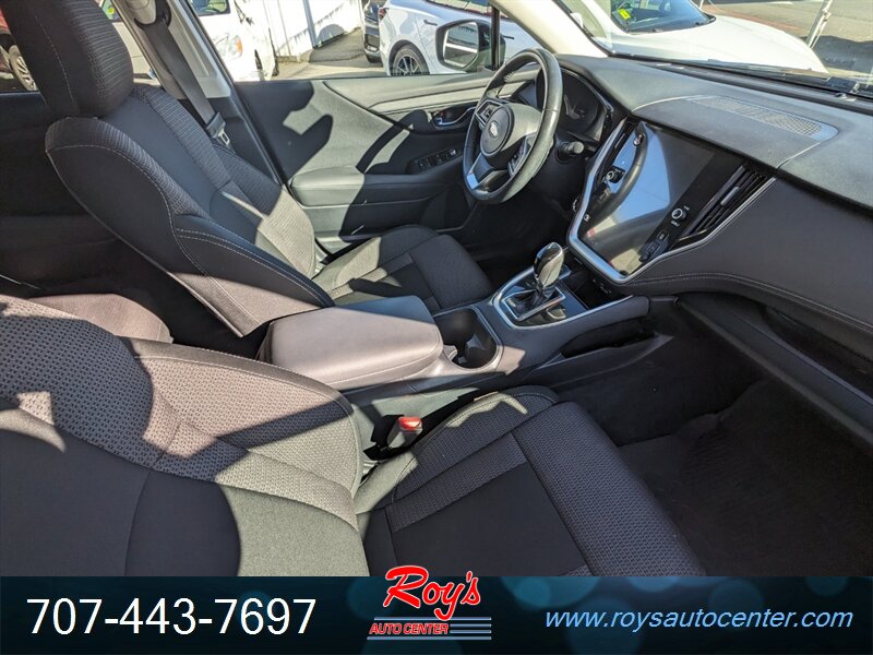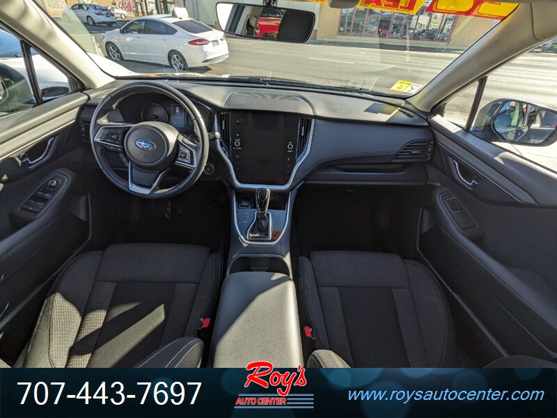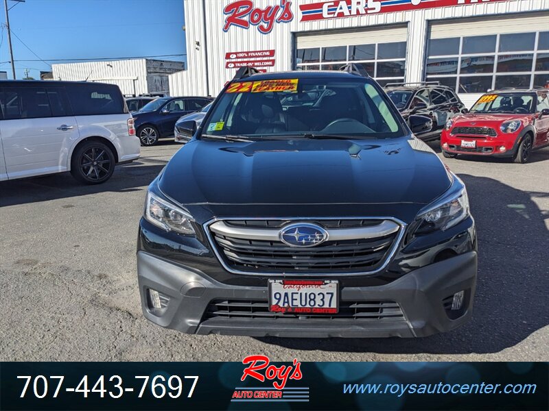 2022 Subaru Outback Premium AWD in Crystal Black Silica with Slate Black cloth interior. Powered by a 2.5L H4 boxer engine producing 182 hp and 178 lb-ft, paired with Subaru’s Lineartronic CVT and Symmetrical All-Wheel Drive — EPA-rated 26 MPG city / 33 MPG highway. Factory equipment includes Subaru EyeSight driver-assist technology (adaptive cruise control, pre-collision braking, lane-keep assist), X-MODE with hill descent control, roof rails, rearview camera, infotainment with Apple CarPlay and Android Auto, dual-zone automatic climate control, cloth seating and multiple USB ports. Excellent overall condition and only one owner.