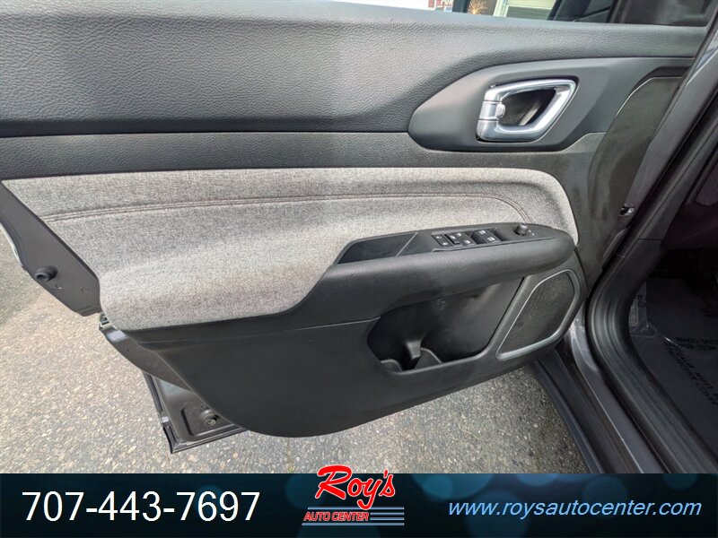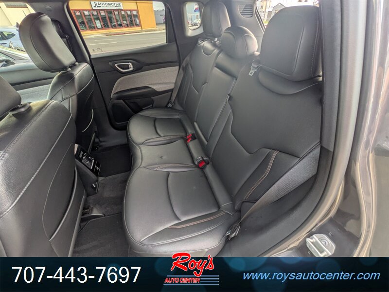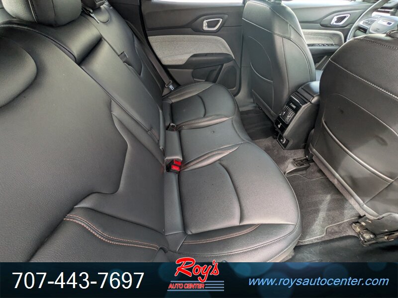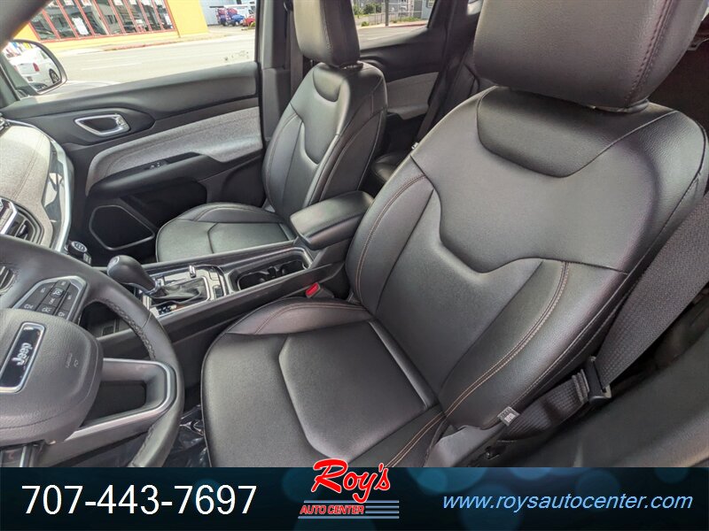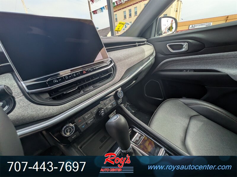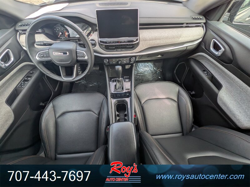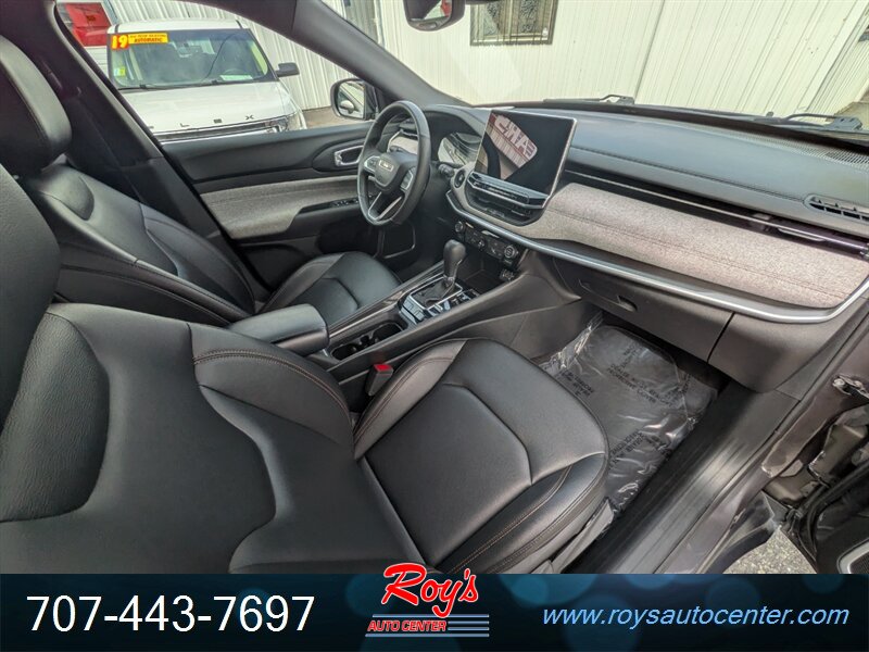 2024 Jeep Compass Latitude Lux 4WD with a 2.0L Turbo I4 (200 hp, 221 lb-ft). Factory-equipped features include black leatherette seating surfaces with heated front seats and power-adjustable driver’s seat, leather-wrapped steering wheel, dual-zone automatic climate control, 8.4-inch Uconnect infotainment with Apple CarPlay/Android Auto, Bluetooth and USB ports, remote start, keyless entry and push-button start, rearview camera, blind-spot monitoring with rear cross-path detection, forward collision warning with active braking, lane departure warning/assist, and alloy wheels. Finished in Granite Crystal Metallic Clear Coat with a black leatherette interior, this vehicle has excellent overall condition, under 26,000 miles (averaging less than 9,000 miles/year), EPA ratings of 24 MPG city and 32 MPG highway, a clean CARFAX, and one previous owner.